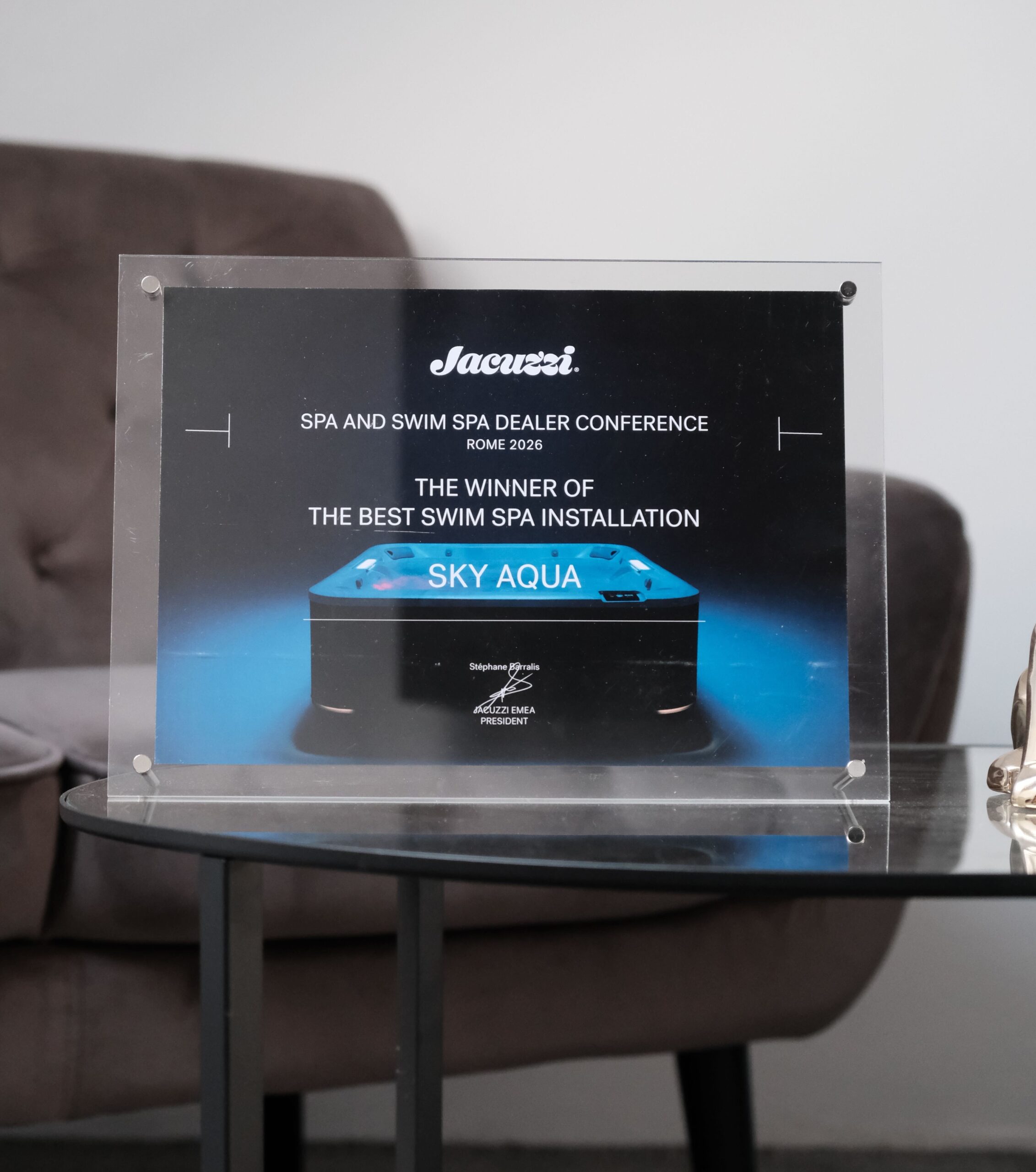 A 2024-es milánói Jacuzzi® „Spa and Swim Spa Dealer Conference” gálán „Az év legjobban teljesítő kereskedője” címet kaptuk meg a nemzetközi mezőnyben.